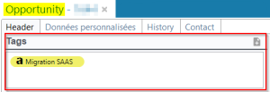 - Tags section of an opportunity in the Desktop Application > Management > Sales > Opportunities > Header tab;