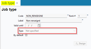 - 'Job type' type which corresponds to the type entered in the setup of the job type;