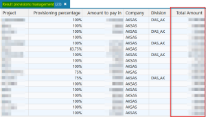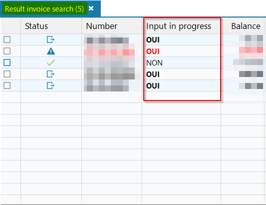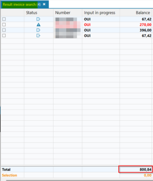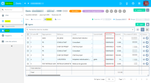 The Doubtful debt management menu (Accounting > Periodic work > Doubtful debt management) allows you to view the management of provisions made for each invoice of a doubtful customer.
