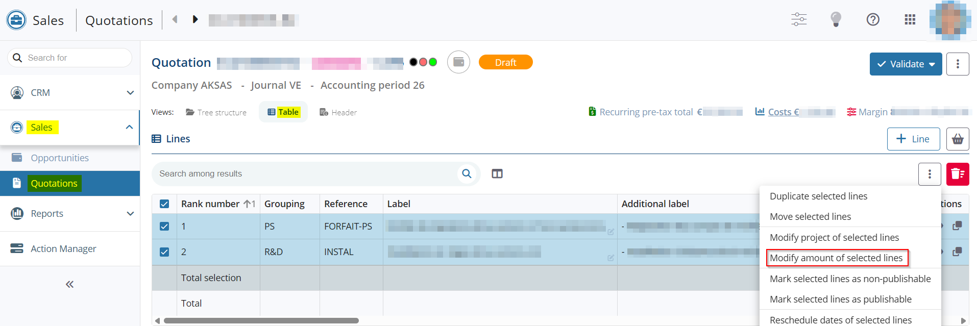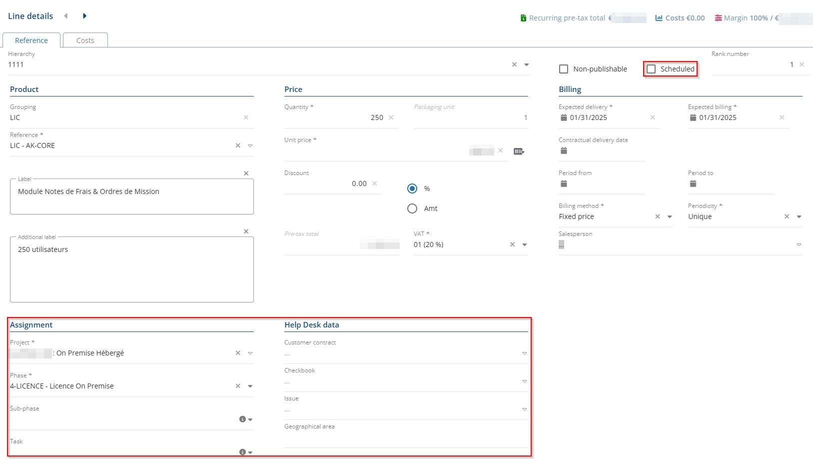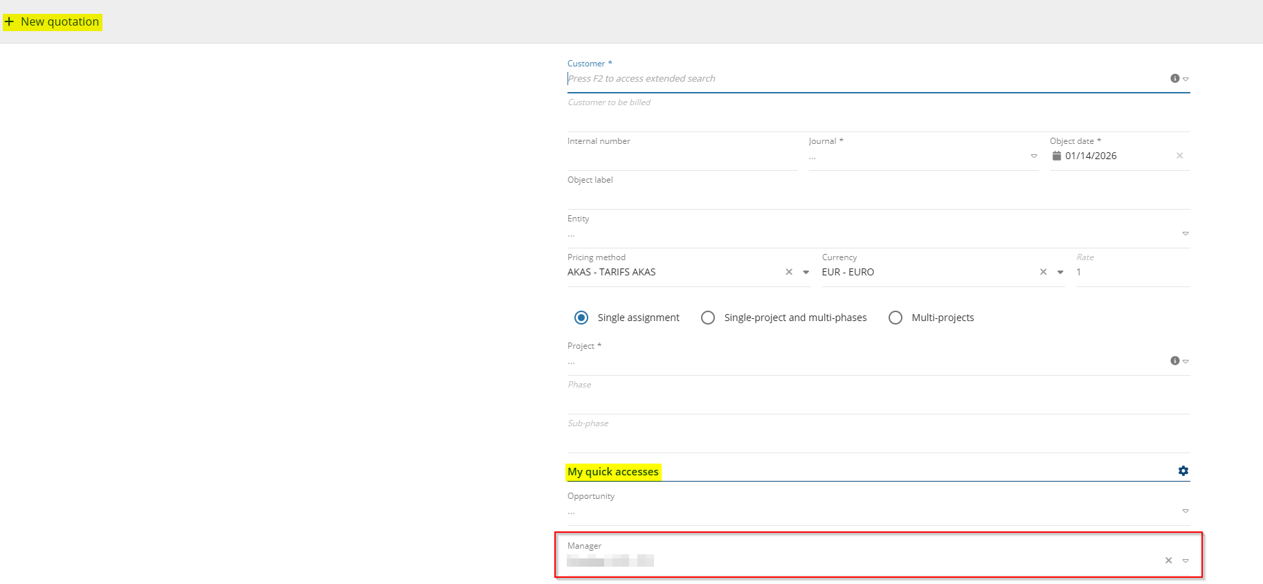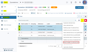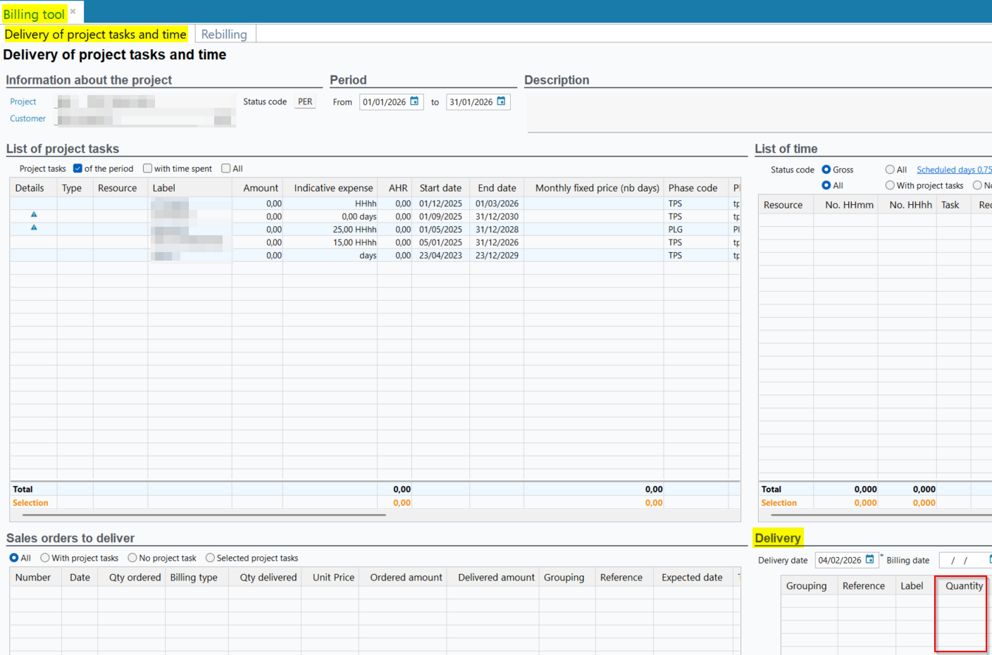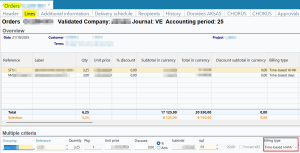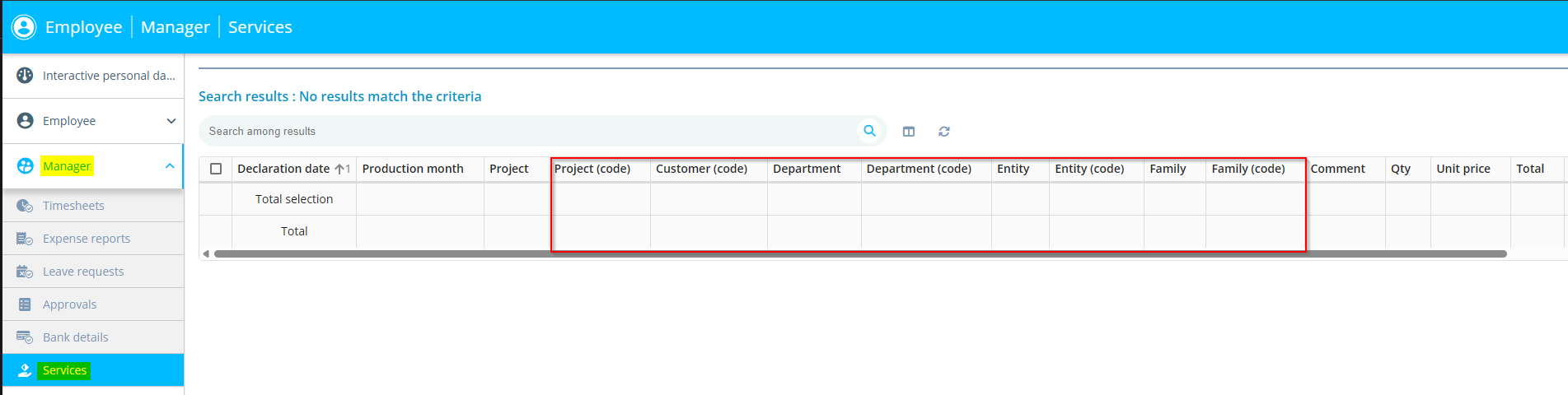 From now on, it is also possible to access this menu from the Desktop Application. The Services validation hyperlink has been added to the 360 degree view of a project > Sales section and automatically starts a search of the Manager module > Services menu with the Project search criterion specified with the name of the current project.