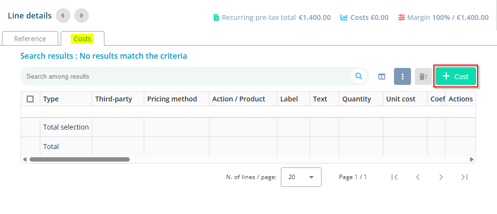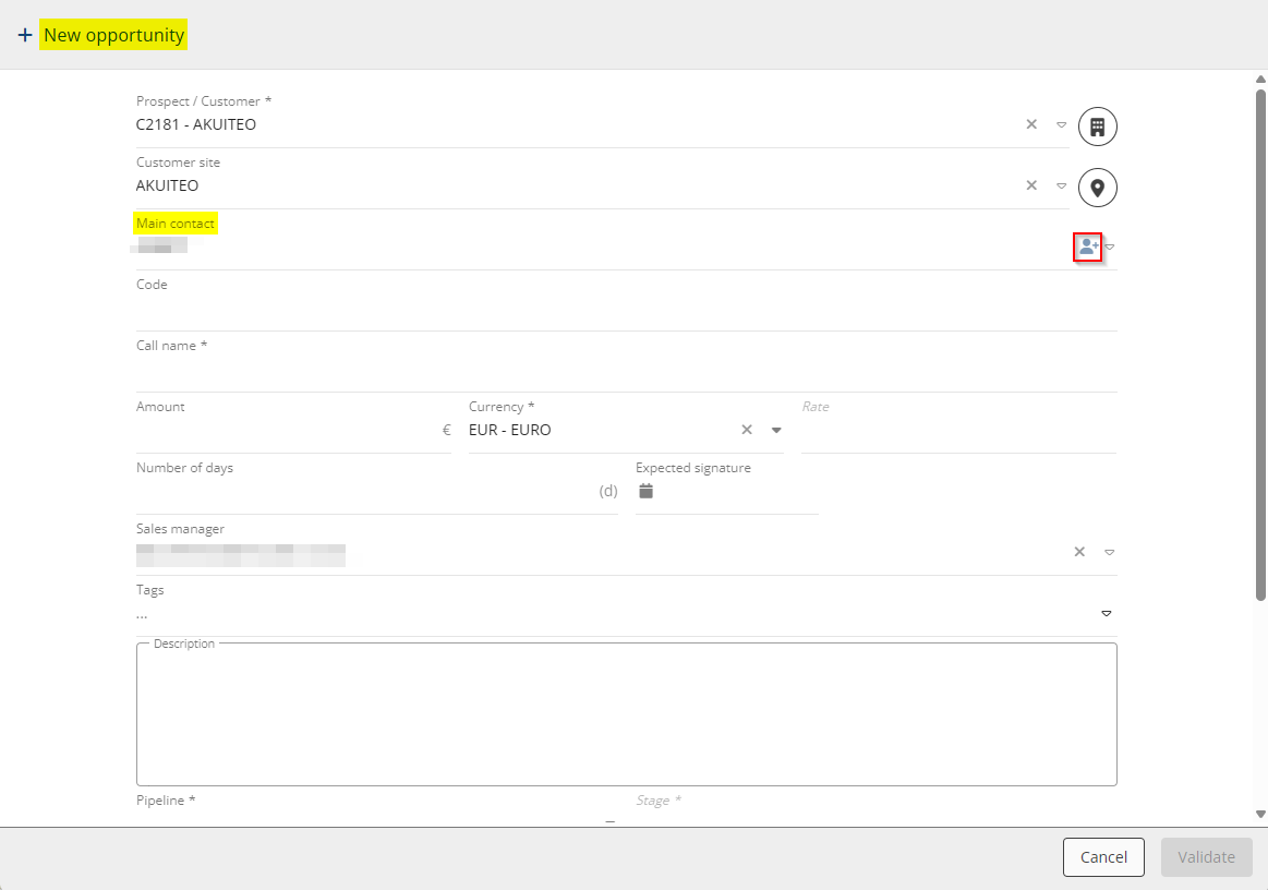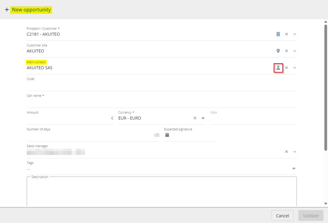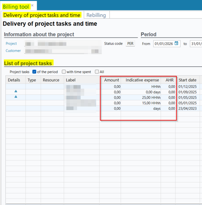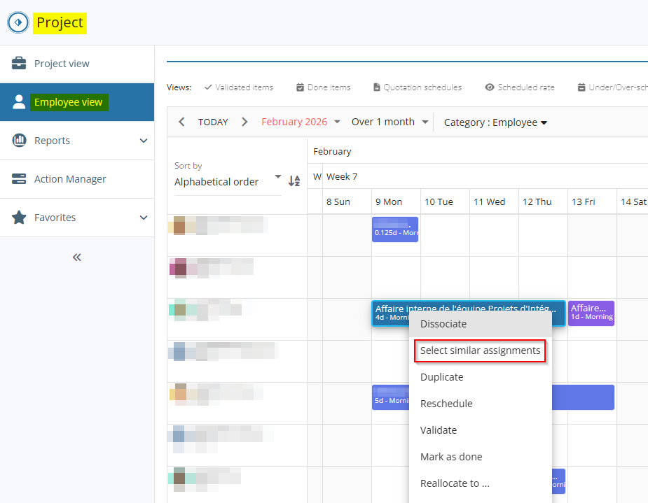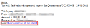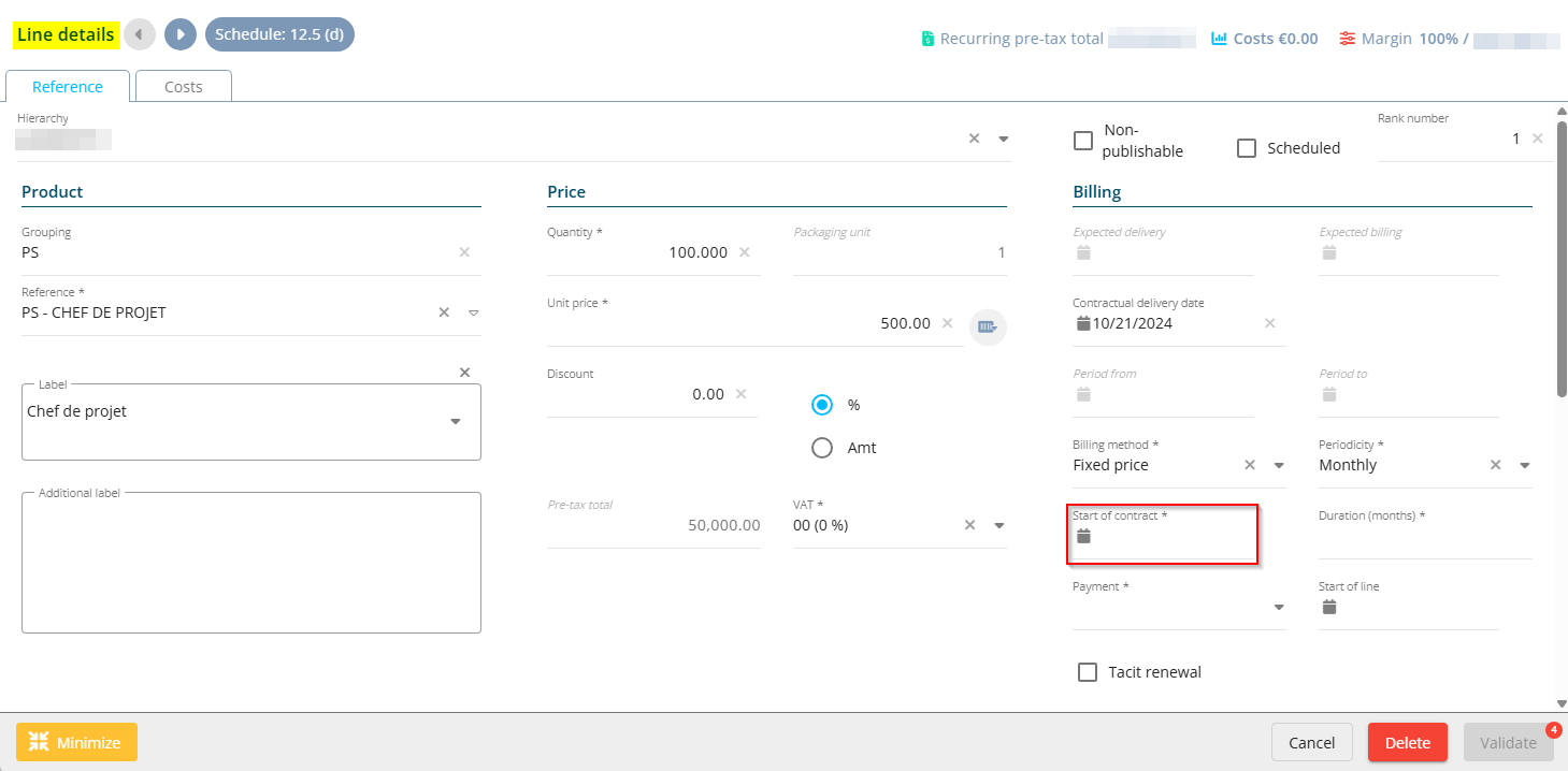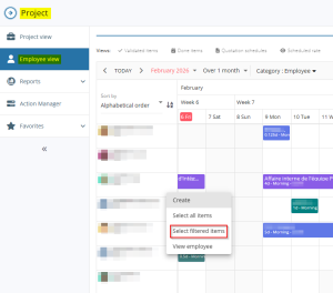 From now on, it is also possible to access this menu from the Desktop Application. The Services validation hyperlink has been added to the 360 degree view of a project > Sales section and automatically starts a search of the Manager module > Services menu with the Project search criterion specified with the name of the current project.