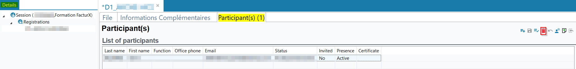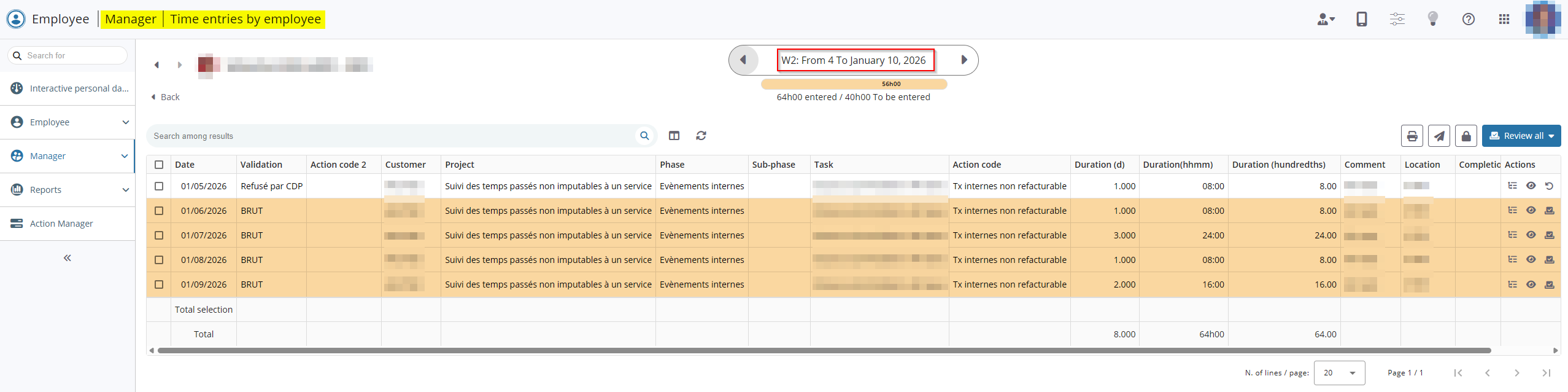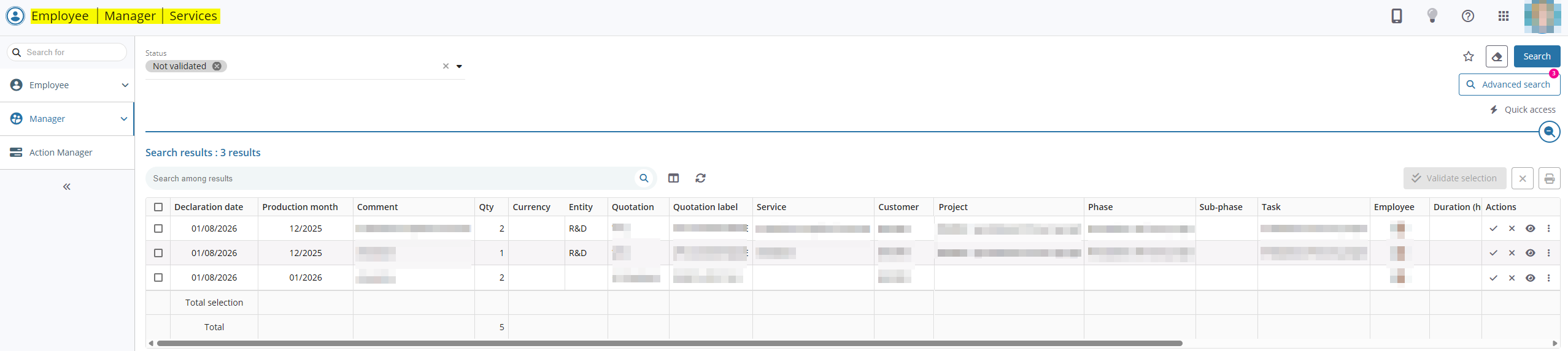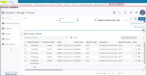 If the user has the required rights, the actions linked to the services can be done from this tab (for instance, validating or reject a service).