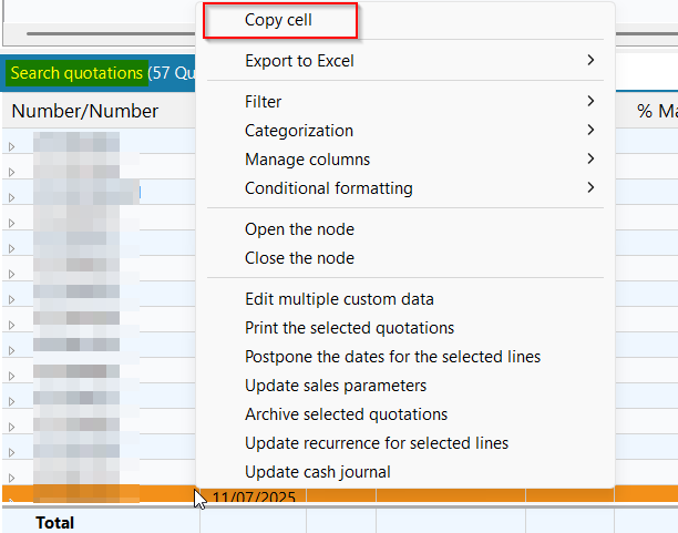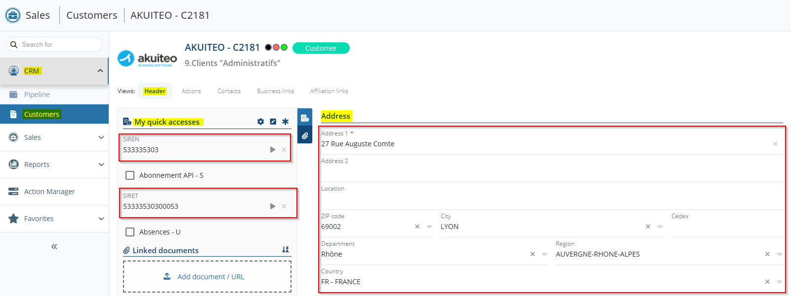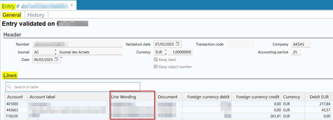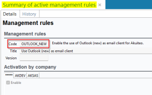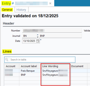 From now on, before applying these existing rules, Akuiteo first checks whether the columns Label, wording (cont.), Comment, Discount reference, or Sold-to-party account contain the code of a third party in Akuiteo. If a match is found with the third-party code, it is automatically specified in the Organization code column.