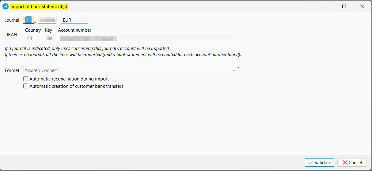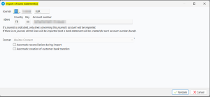 For more information, see Importing a bank statement and ImportReleveBancaire batch.