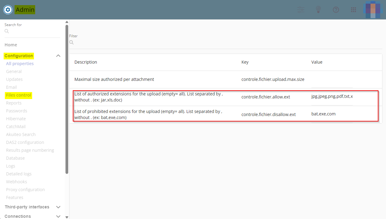 - As part of Akuiteo's dependencies updates, the OpenOffice classes have been deleted. Thus, the OpenOffice server host and OpenOffice port fields available in the Administration console > Configuration > Reports have also been deleted.