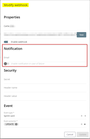 | Transverse | Notification Echec Webhook | See release note Webhooks: Possibility to set up an email alert in case of error. | 5.15.0 |