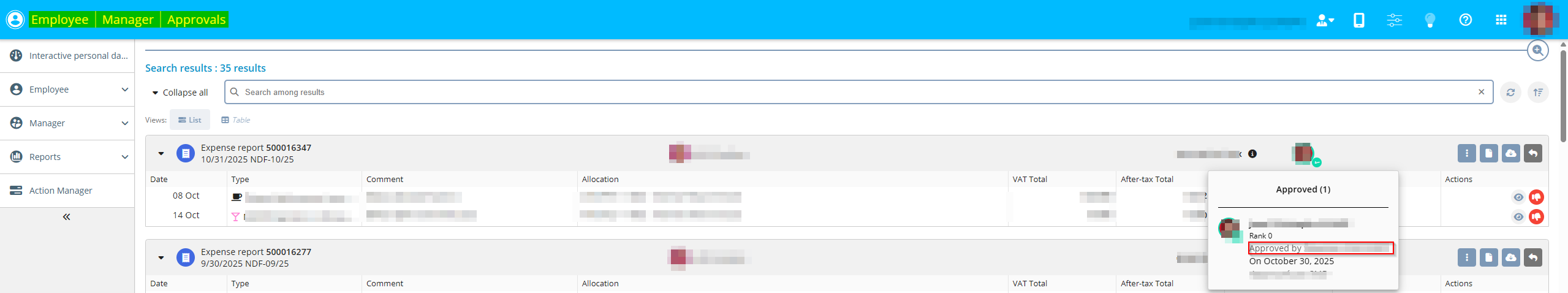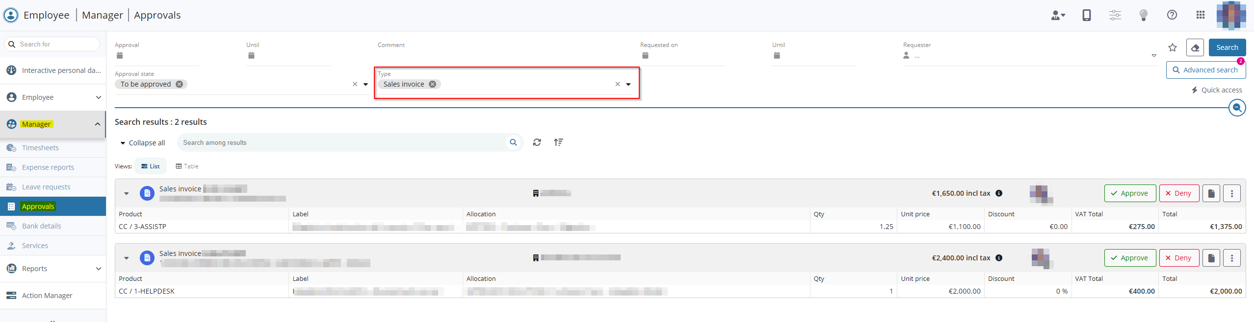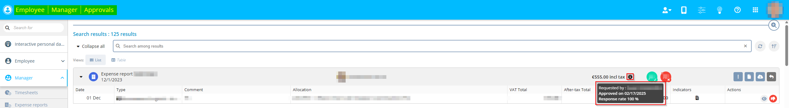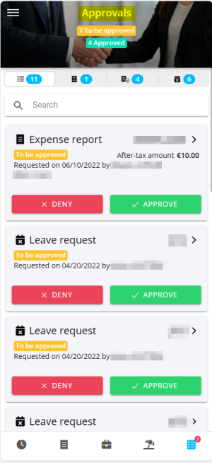 It is also possible to validate or deny expense reports and leave requests from this menu.
