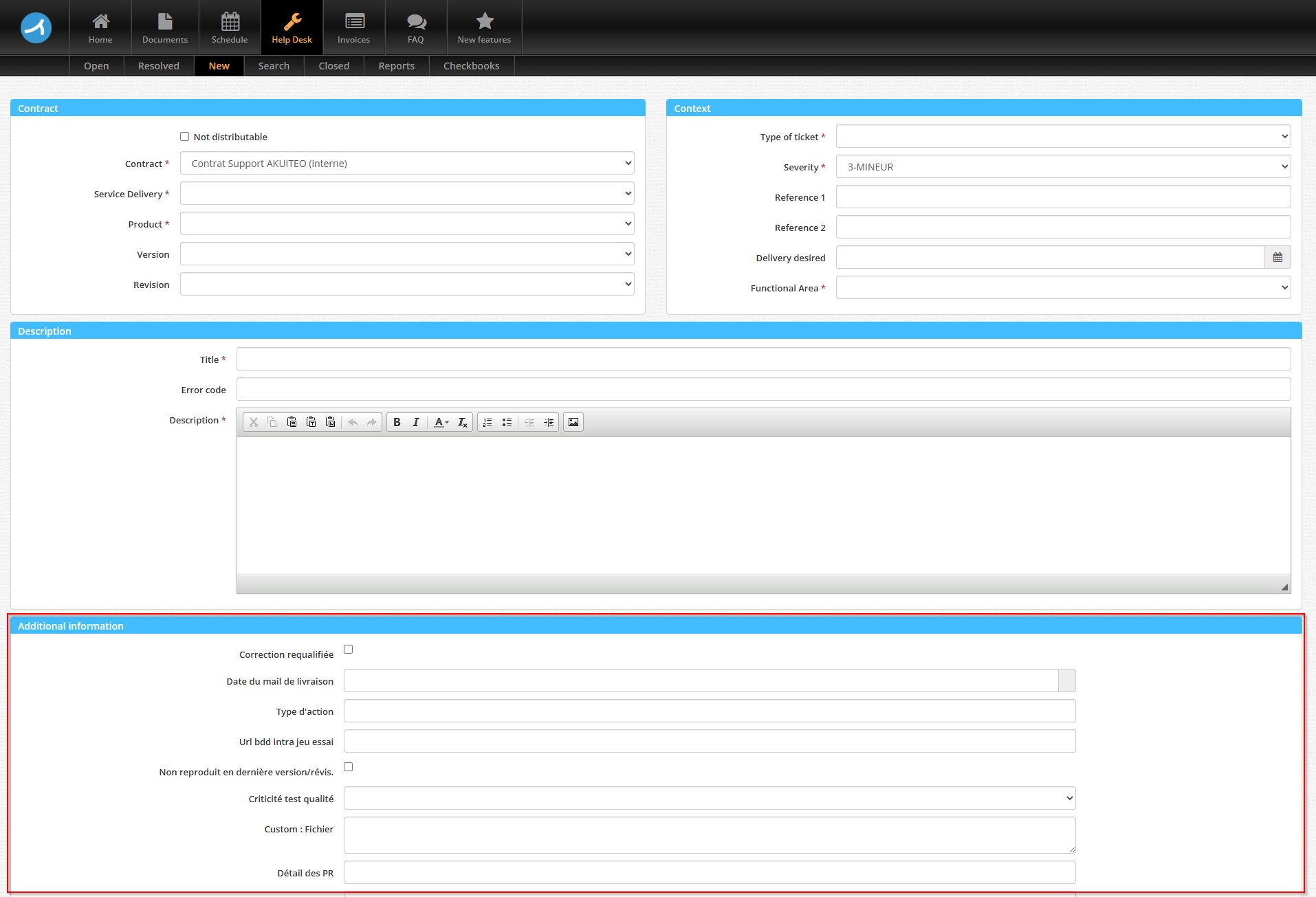 | Portail support | Texte Riche | See release note Help Desk issues: Rich text on internal information and direct messages. | 5.9.0 |