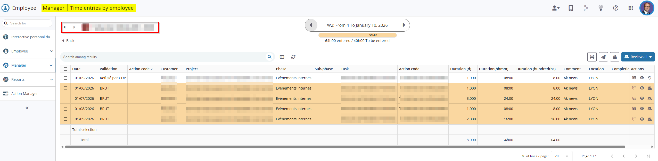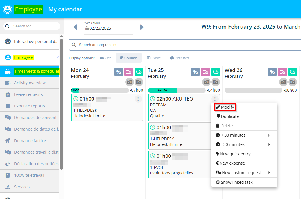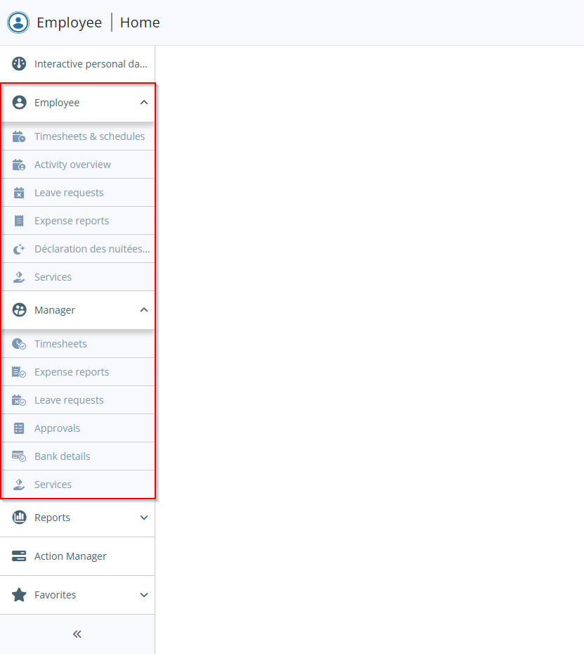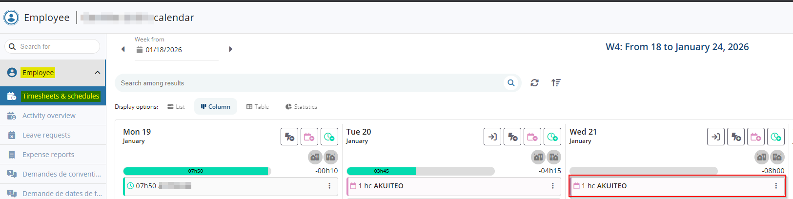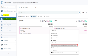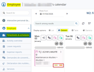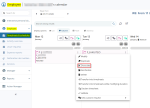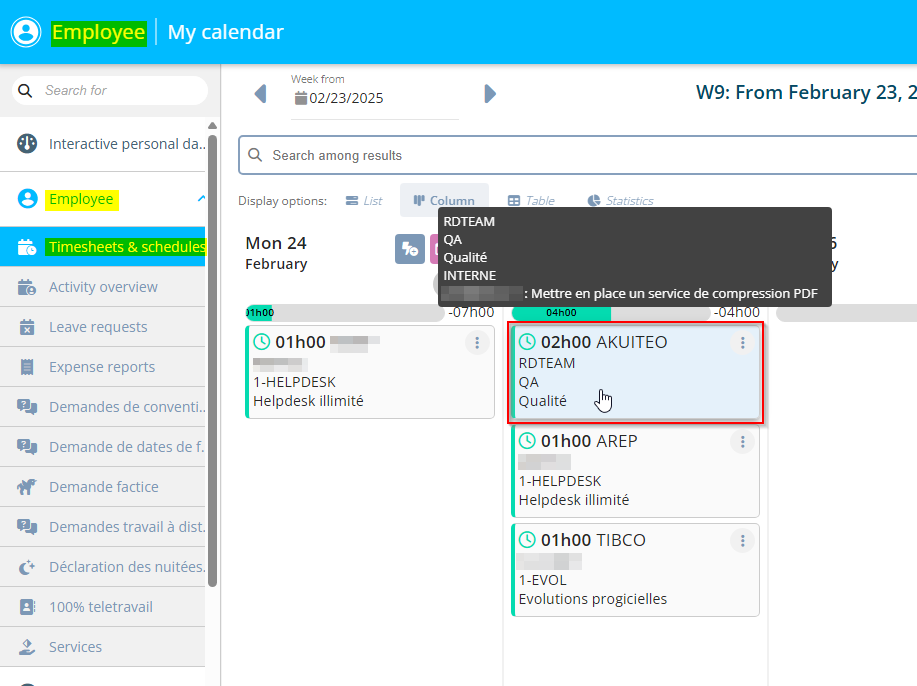 | Portail collaborateur | Changer De Collaborateur | See release note Timesheets & schedules and Activity overview: New function to manage the calendar and activity on behalf of another employee. | 5.15.0 |