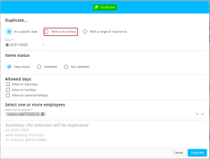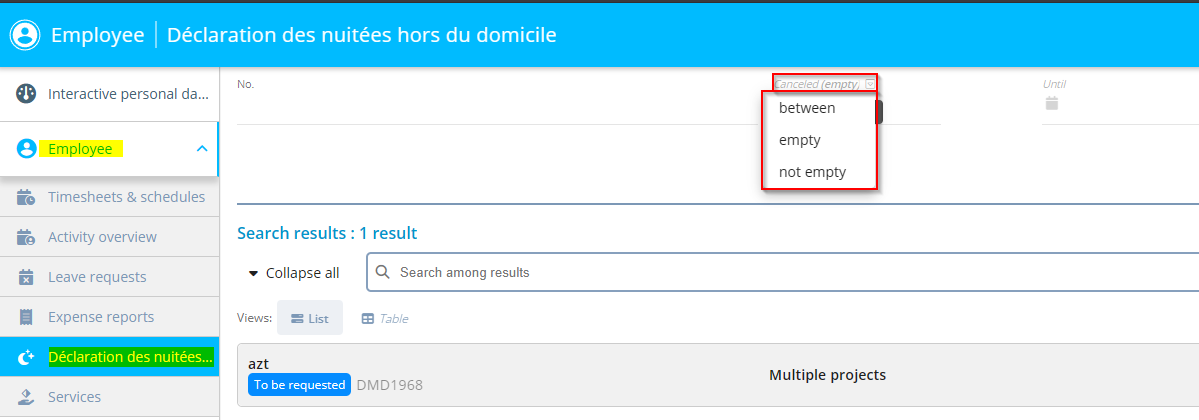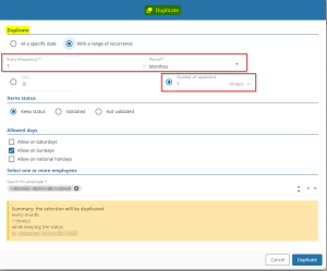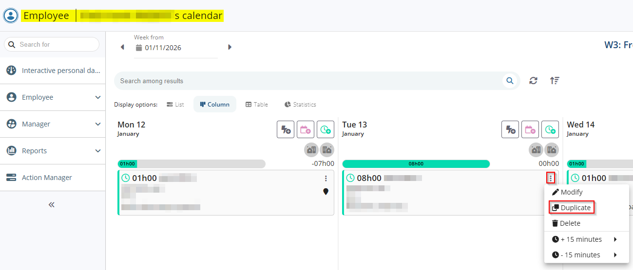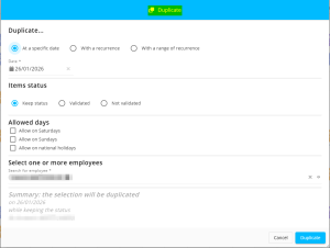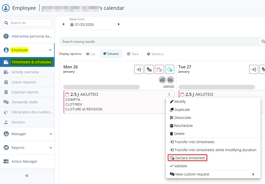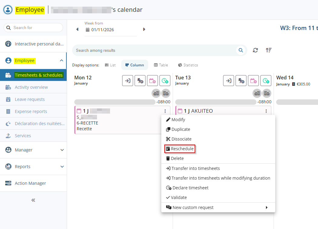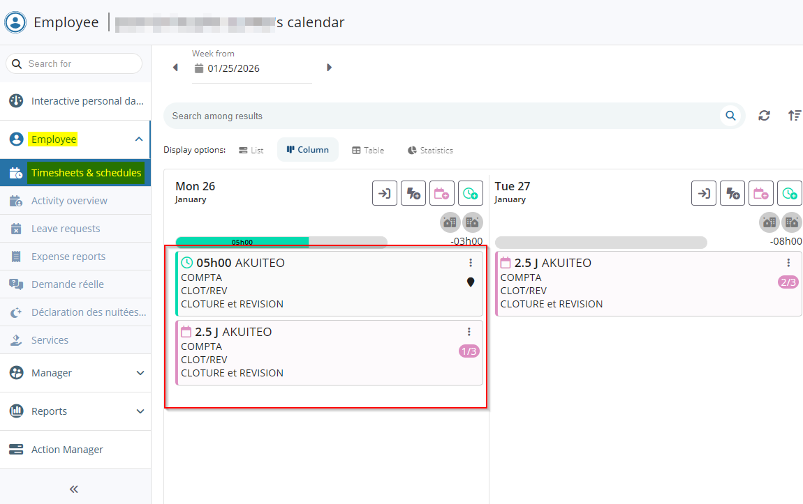 | Portail collaborateur | Changer De Collaborateur | See release note Timesheets & schedules and Activity overview: New function to manage the calendar and activity on behalf of another employee. | 5.15.0 |