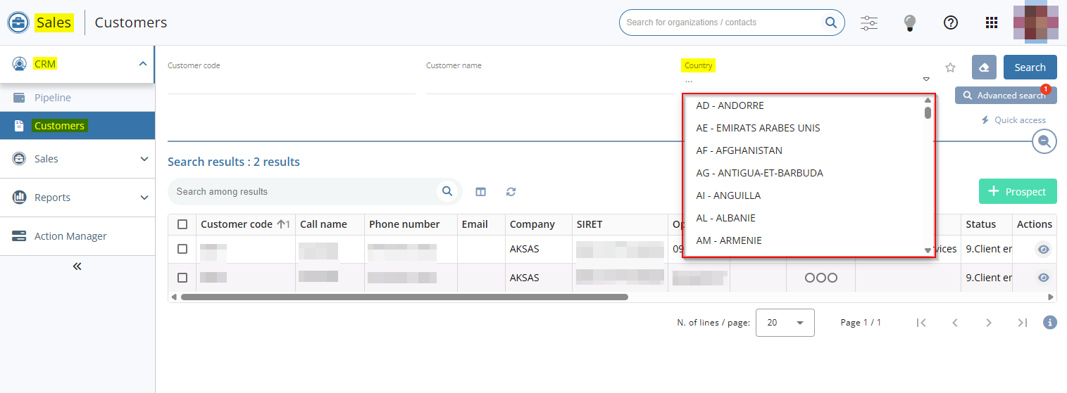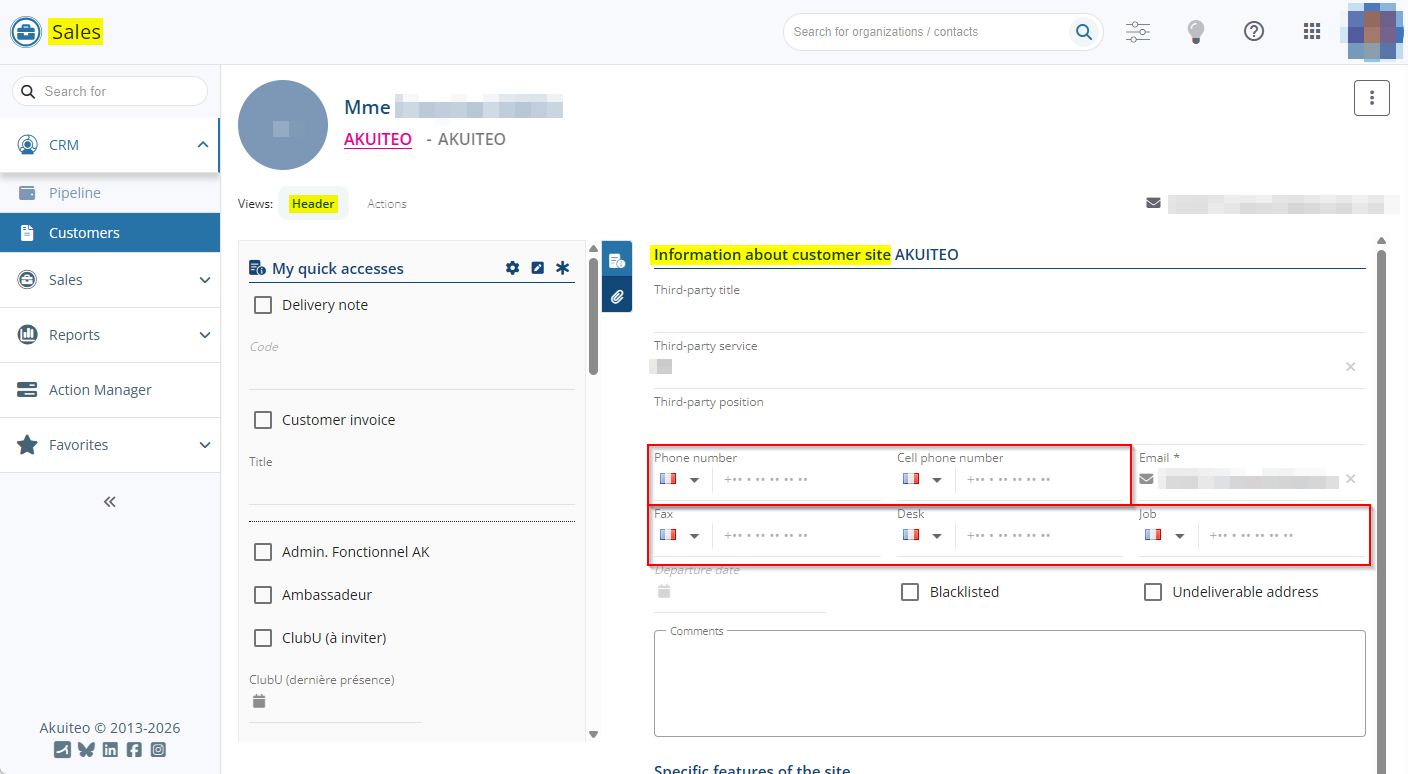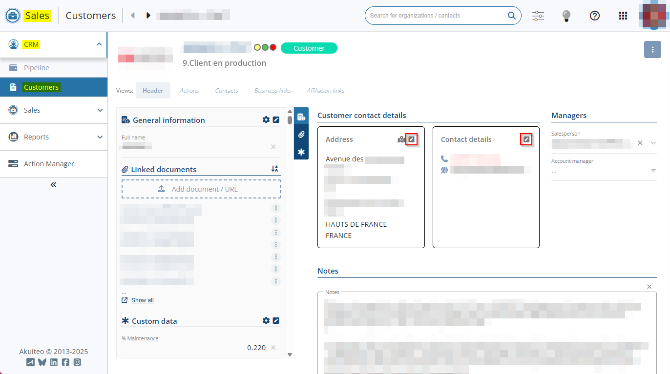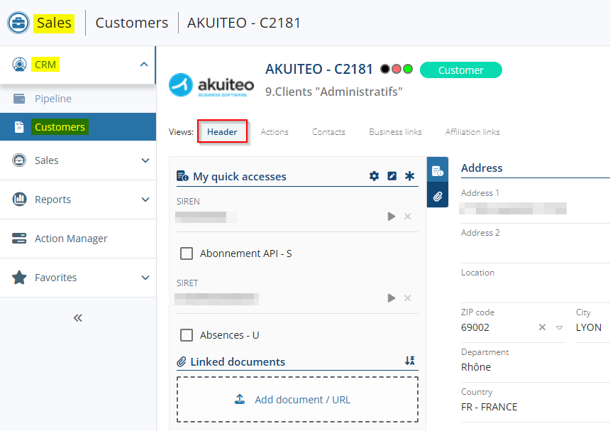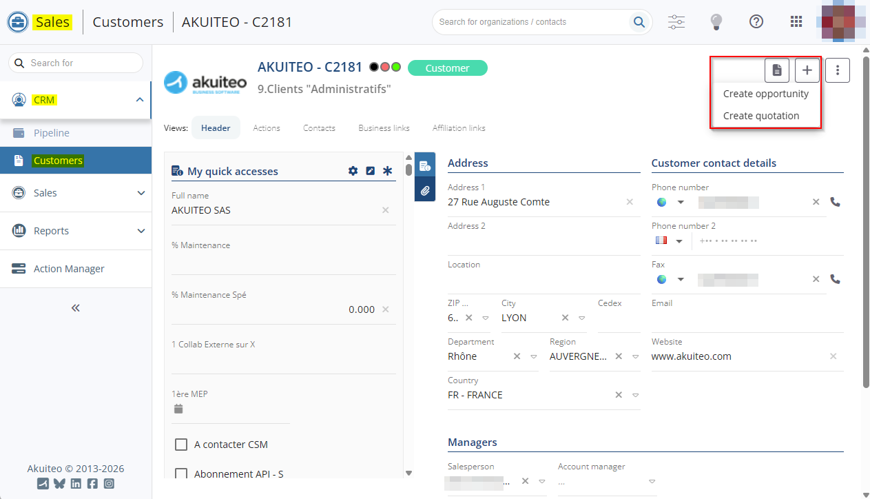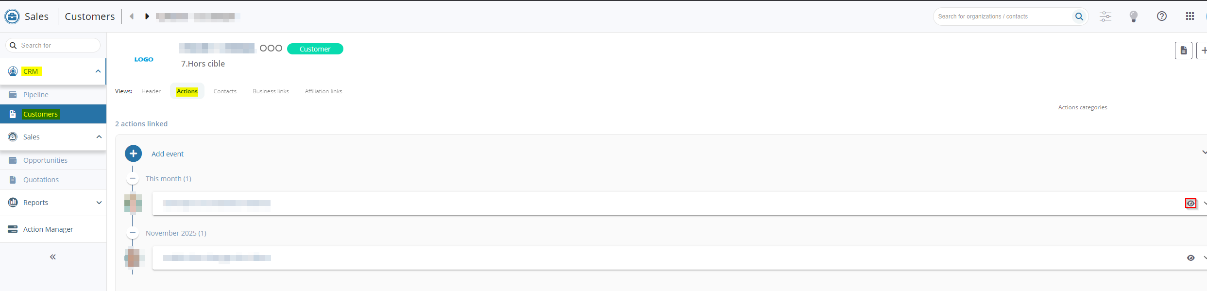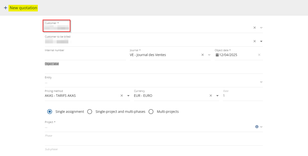 Previously, from the 360 degree view tab > Sales section of customers/prospects (People > Customers/Prospects) and projects (Management > Projects), the Billed customer column displayed the billed customer only for invoices and was empty for other objects.