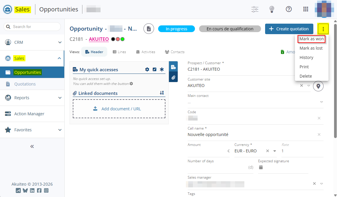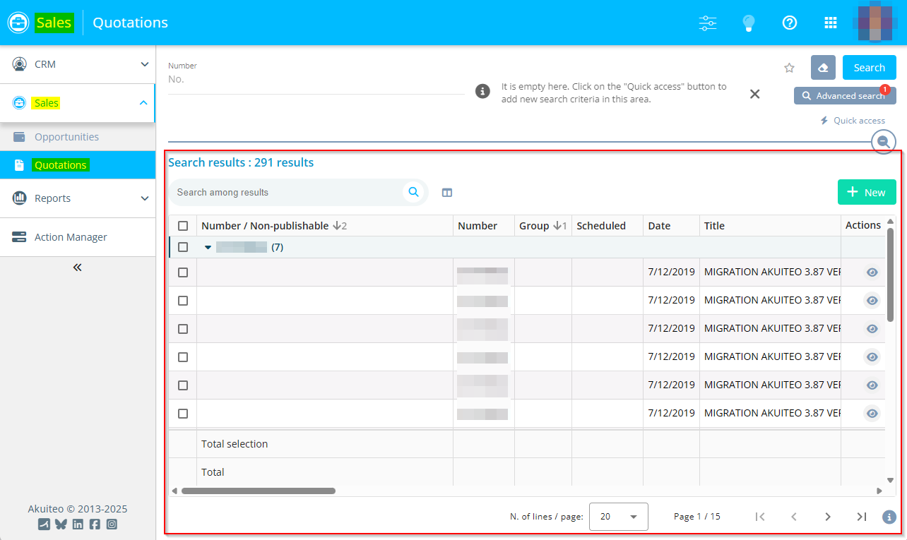 | Portail ventes | Quotations | See release note New web portal dedicated to managing quotations. | 5.9.0 |