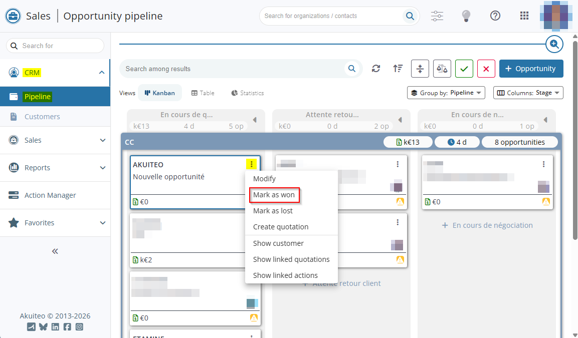 | Portail ventes | Pipeline | See release note CRM: CRM module migrated to the Sales Portal. | 5.14.0 |