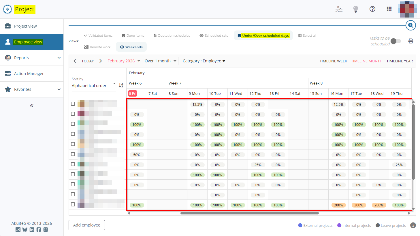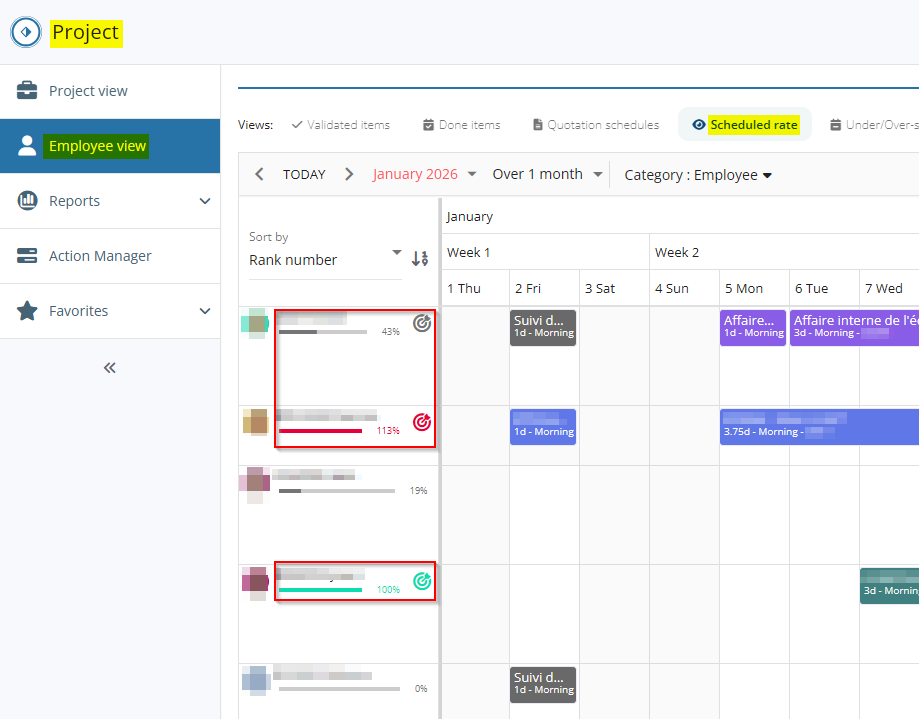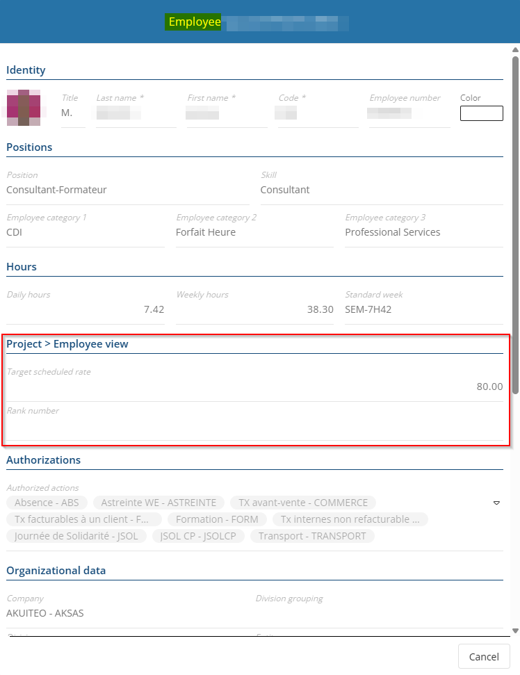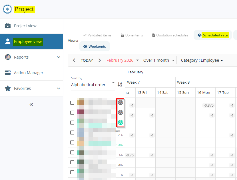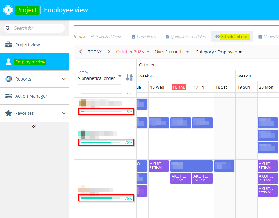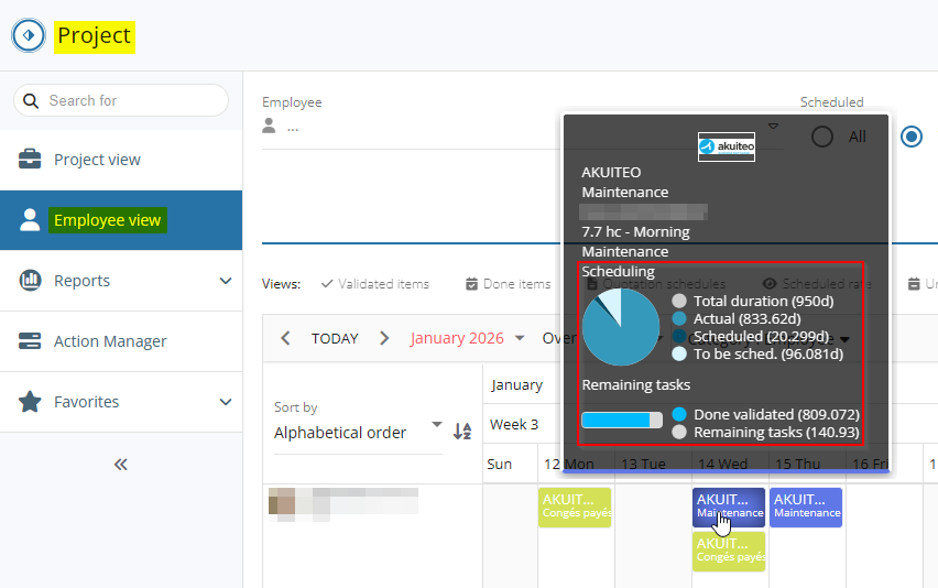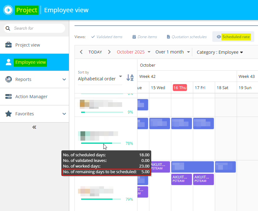 | Portail project | Indicateur Depassement de Plg | See release note Employee view: Under/over-scheduling indicators as percentages. | 5.15.0 |