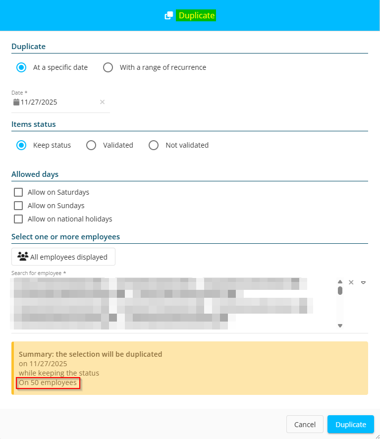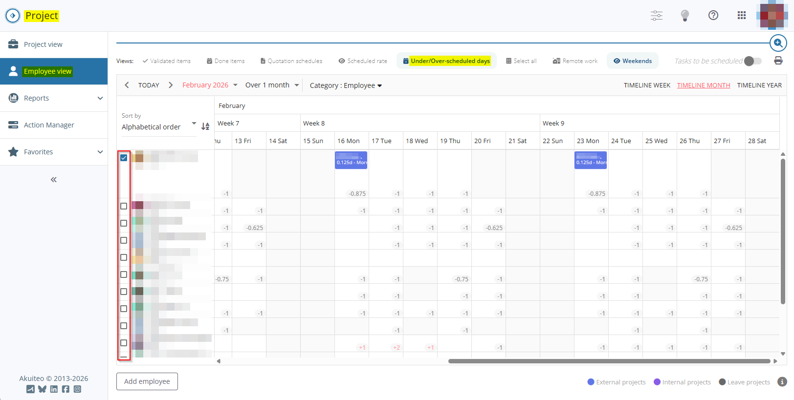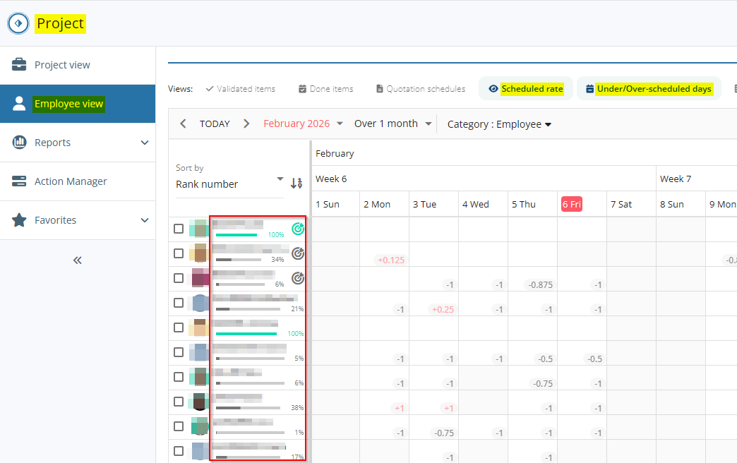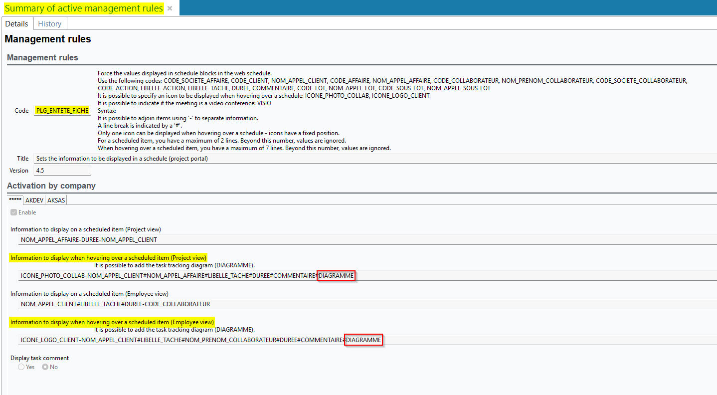 | Portail project | Indicateur Depassement de Plg | See release note Employee view: Under/over-scheduling indicators as percentages. | 5.15.0 |