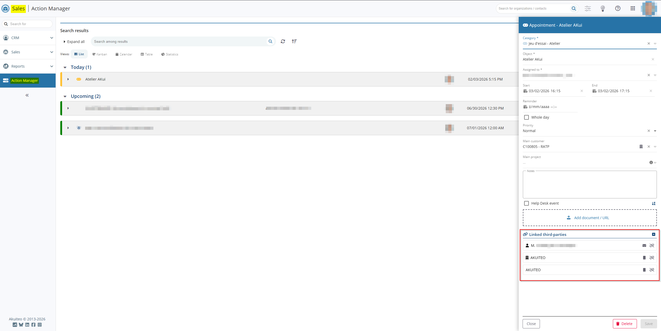 | Portail ventes | Liens Gestion Crm | See release note Customers and Prospects: Possibility to manage business links. | 5.10.0 |