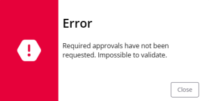 When booking the invoice from Edit > Book invoice or Book and print the invoice a verification is made in order to determine if there is an approvals system on customer invoices and if all approvals were given for the invoice. If all approvals have not been received, the booking is blocked and an error message is displayed.