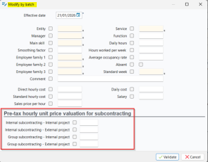 | Transverse | Heures centiemes | See release note Scheduled items: New management rule added for the management of scheduled items in hours hundredth. | 5.15.0 |