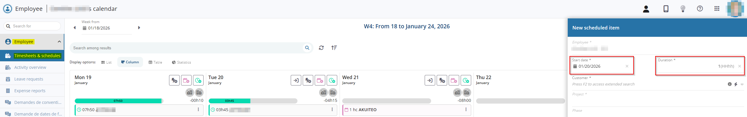 Previously, those options were not taken into account when transferring a scheduled item into timesheets on the Akuiteo Mobile > Timesheets & schedules.