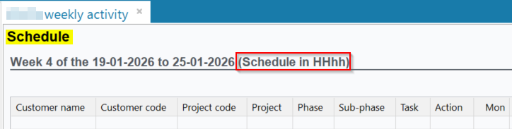 In the setup screen of model weeks (Tools > Setup > General setup > Resources and Labor > Model weeks):
