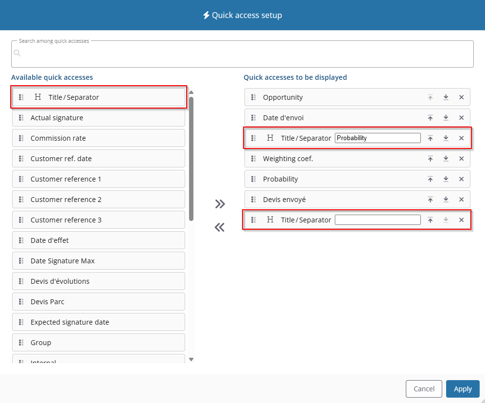 | Portail ventes | Recherche Comptes Et Contacts | See release note CRM: CRM module migrated to the Sales Portal. | 5.14.0 |