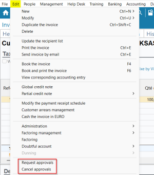 From now on, draft customer invoices (Management > Sales > Invoices) can be submitted to approvals before being booked (Edit > Book invoice or Book and print the invoice) so the managers can verify the information on the invoice.