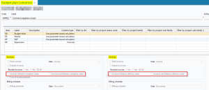 In order to differentiate invoices originating or not originating from receptions/deliveries, options have been added in the setup of budget control columns (Setup > General setup > Project > Budget plan (columns).