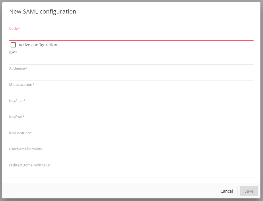 From now on, this configuration can be easily made from the Administration console. The following fields were added in the Administration console > Security > SAML > New configuration: