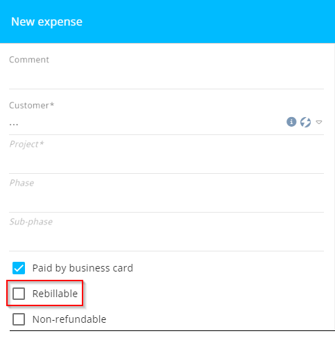 If this option is disabled, the Rebillable checkbox is no longer visible but an expense can still be considered as rebillable.