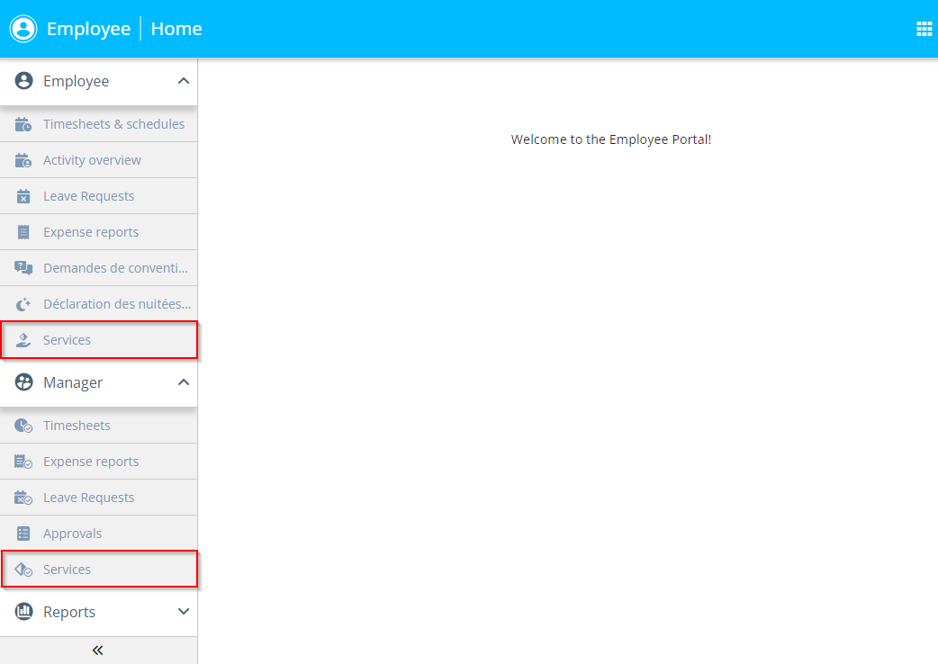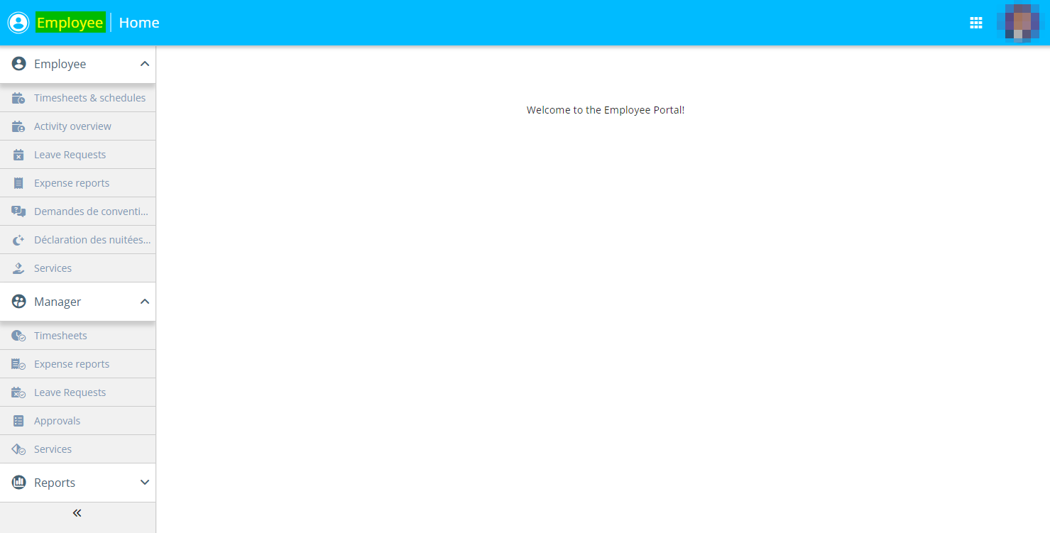 | Portail collaborateur > Manager | Employee Manager | Gives access to the Manager module of the new Web Portal that replaces the old Web Portal. |
