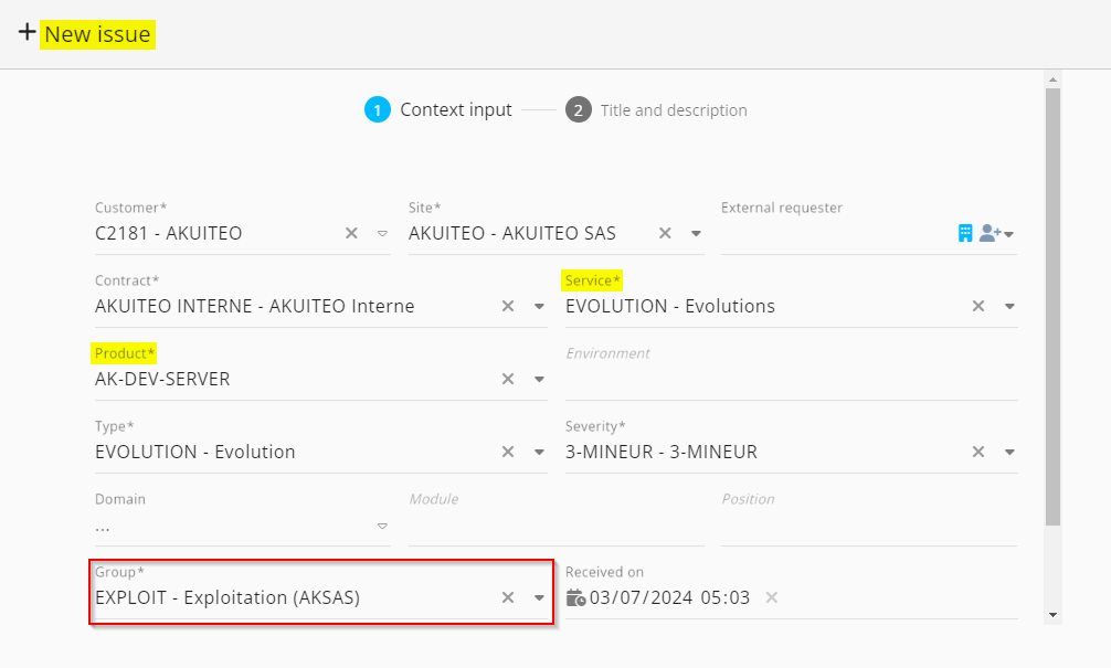 If a product is linked to multiple services lines which groups are different, the Group will be empty after specifying the Product when creating a new issue.