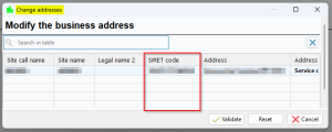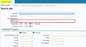 Sites, Purchases and Sales: Possibility to search by SIRET