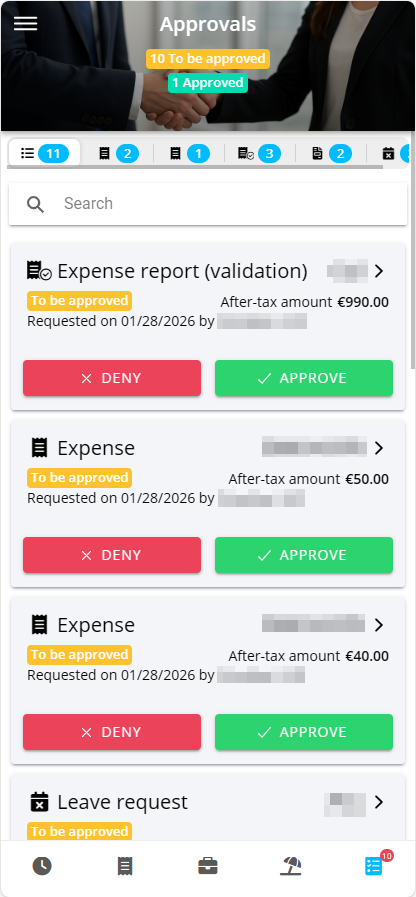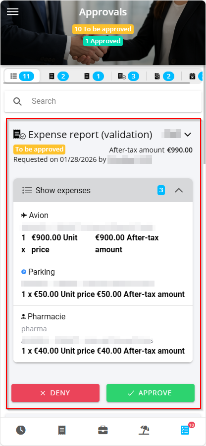 This menu also allows you to validate expense reports and leave requests.