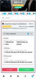 Touch a management object block to view its details. For the expense reports, customer invoices and supplier invoices, the details of the lines is displayed.