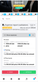 According to the approval type defined in the expense reports approval setup, the approver must either approve the whole expense report or each expense individually.