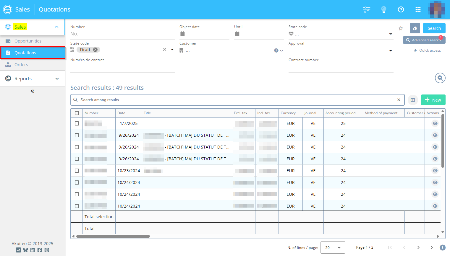 The search screen of quotations can be accessed from the Sales Portal in the Sales module > Quotations.